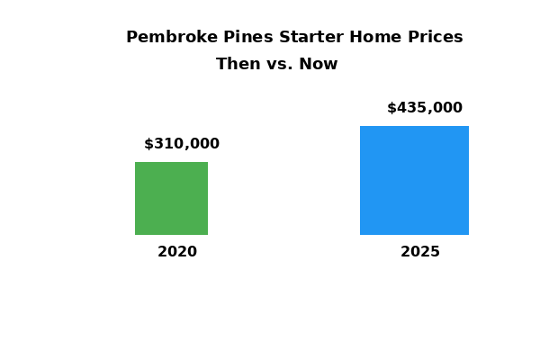 Five years ago, a typical entry level single family home in Pembroke Pines (3 beds, 2 baths, ~1,400 sq ft) sold for around $310,000, especially in neighborhoods within the 33026 zip code.