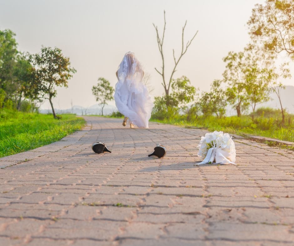 The one where the bride’s halfway down the aisle, everyone’s smiling, the music swells and then, suddenly, she stops.